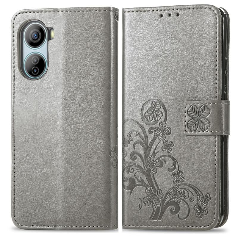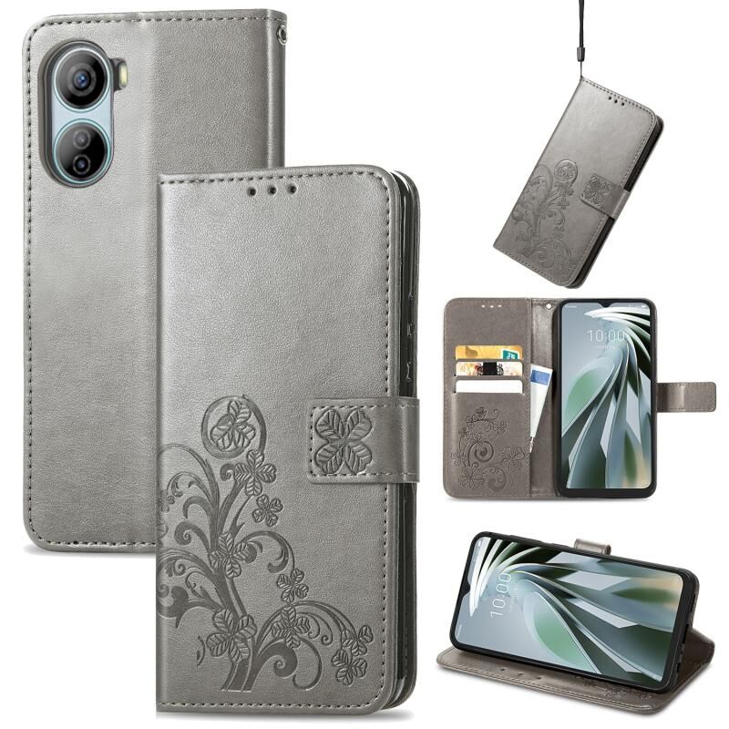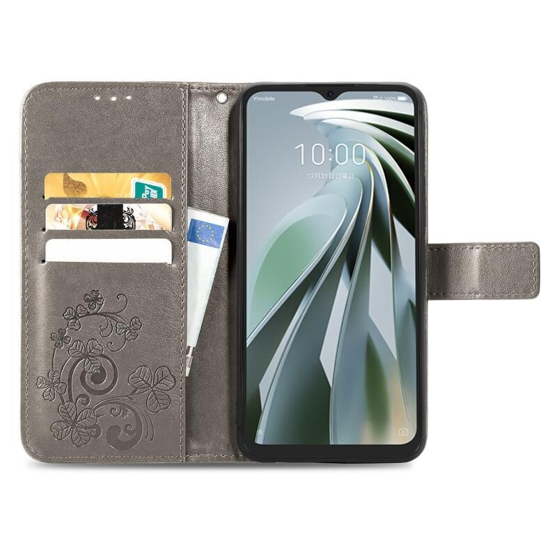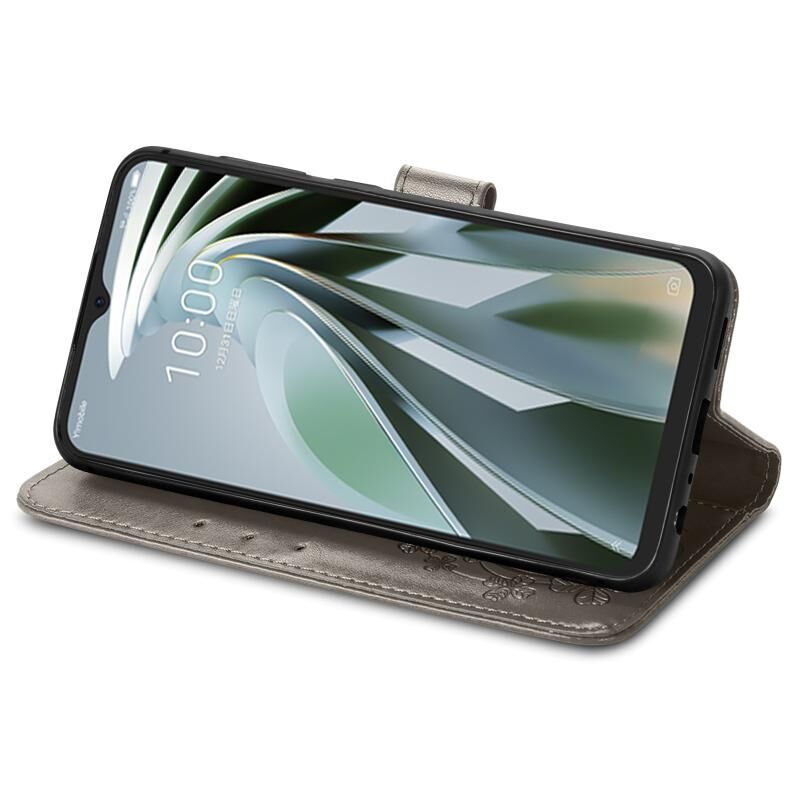 Για ZTE Libero 5G IV τετράφυλλο κούμπωμα ανάγλυφη δερμάτινη θήκη τηλεφώνου (Rrey)