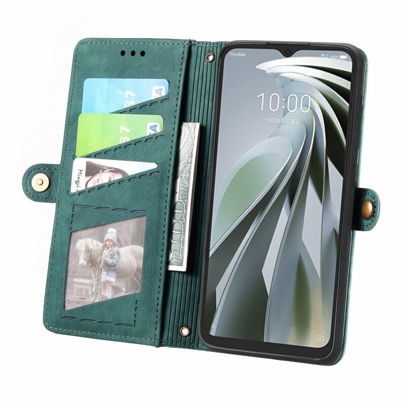 Για ZTE Libero 5G IV γεωμετρική φερμουάρ πορτοφόλι πλευρά πόρπη δερμάτινη θήκη τηλεφώνου (πράσινο)