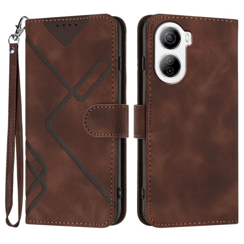 Για ZTE Libero 5G IV Γραμμή μοτίβο δέρματος αίσθηση δέρμα τηλέφωνο υπόθεση (καφέ)
