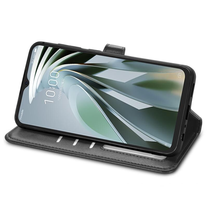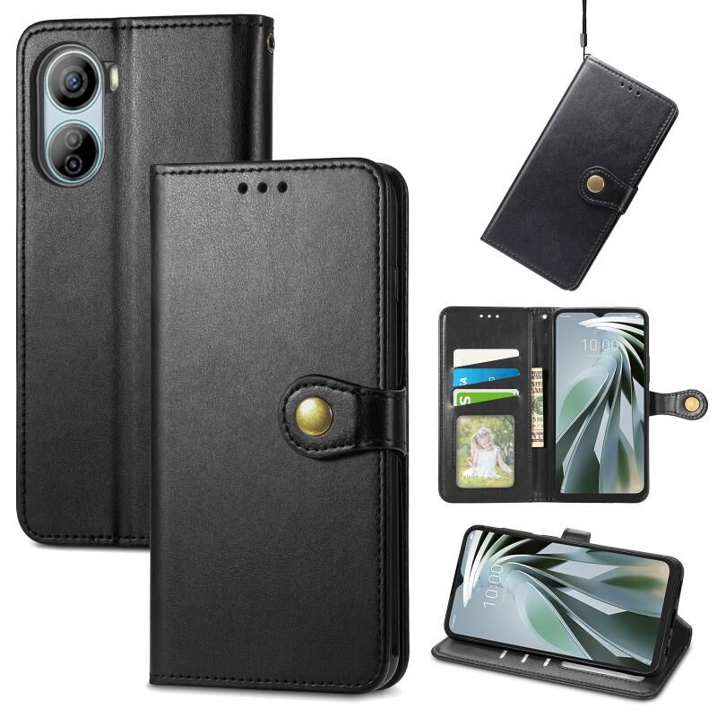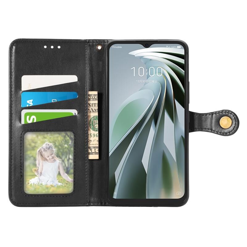 Για ZTE Libero 5G IV Ρετρό στερεό χρώμα αγκράφα δερμάτινη θήκη τηλεφώνου (μαύρο)