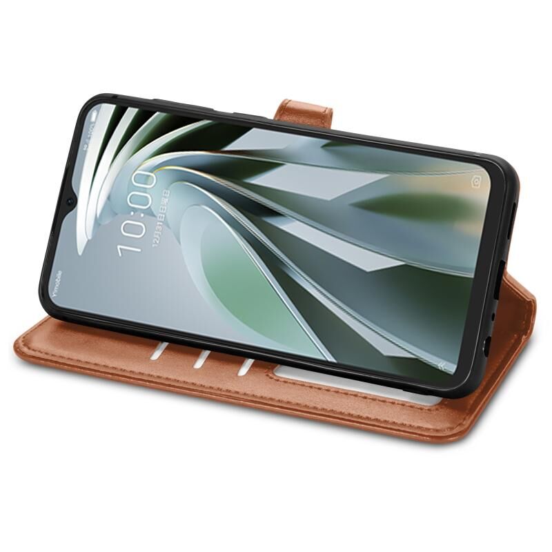Για ZTE Libero 5G IV Ρετρό στερεό χρώμα αγκράφα δερμάτινη θήκη τηλεφώνου (καφέ)
