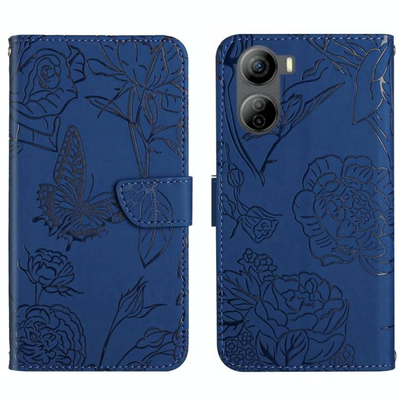 Θήκη κινητού τηλεφώνου ZTE Libero 5G IV με ανάγλυφο σχέδιο πεταλούδας και παιώνιας από δέρμα (Κόκκινο)