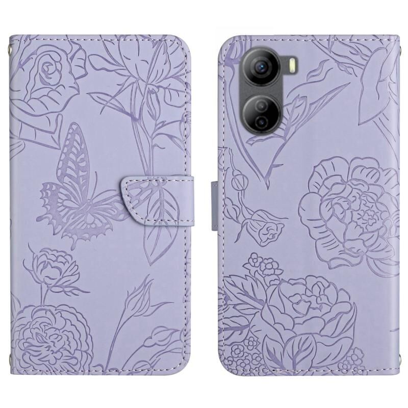 Θήκη κινητού τηλεφώνου ZTE Libero 5G IV με ανάγλυφο σχέδιο πεταλούδας και παιώνιας από δέρμα (Κόκκινο)