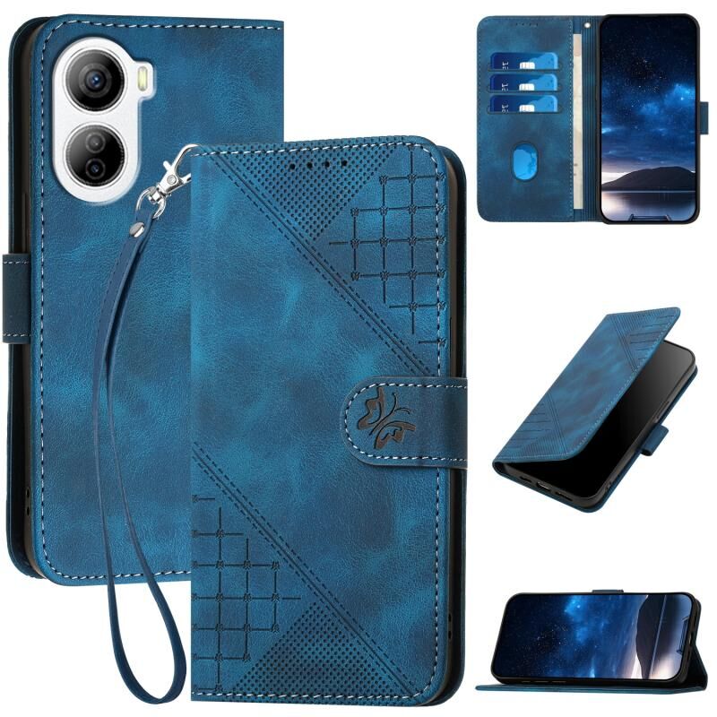 For ZTE Libero 5G IV YX0080 Grid Butterfly Embossed Pattern Flip Leather Phone Case with Lanyard(Dark Blue)