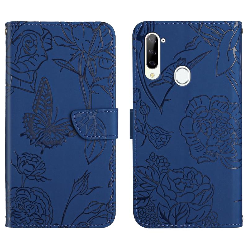 For ZTE Libero 5G Skin Feel Butterfly Peony Embossed Leather Phone Case(Blue)