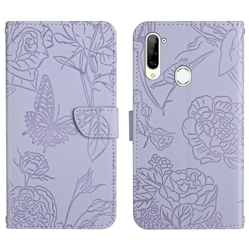 For ZTE Libero 5G Skin Feel Butterfly Peony Embossed Leather Phone Case(Purple)