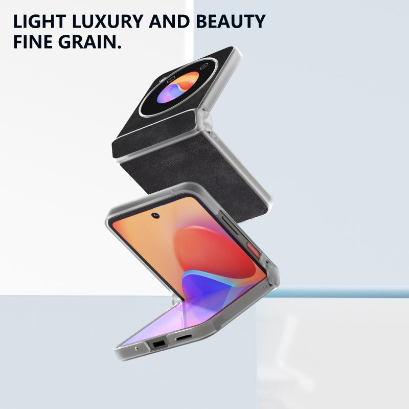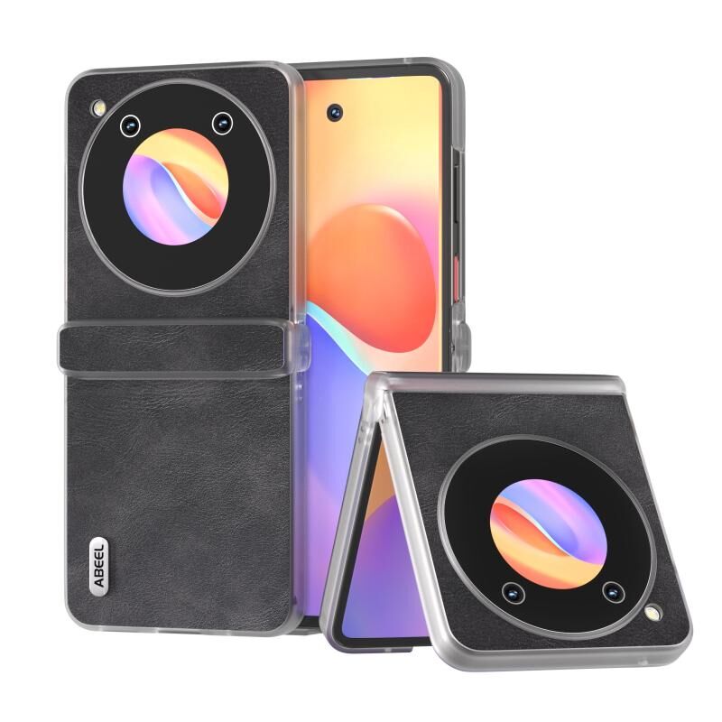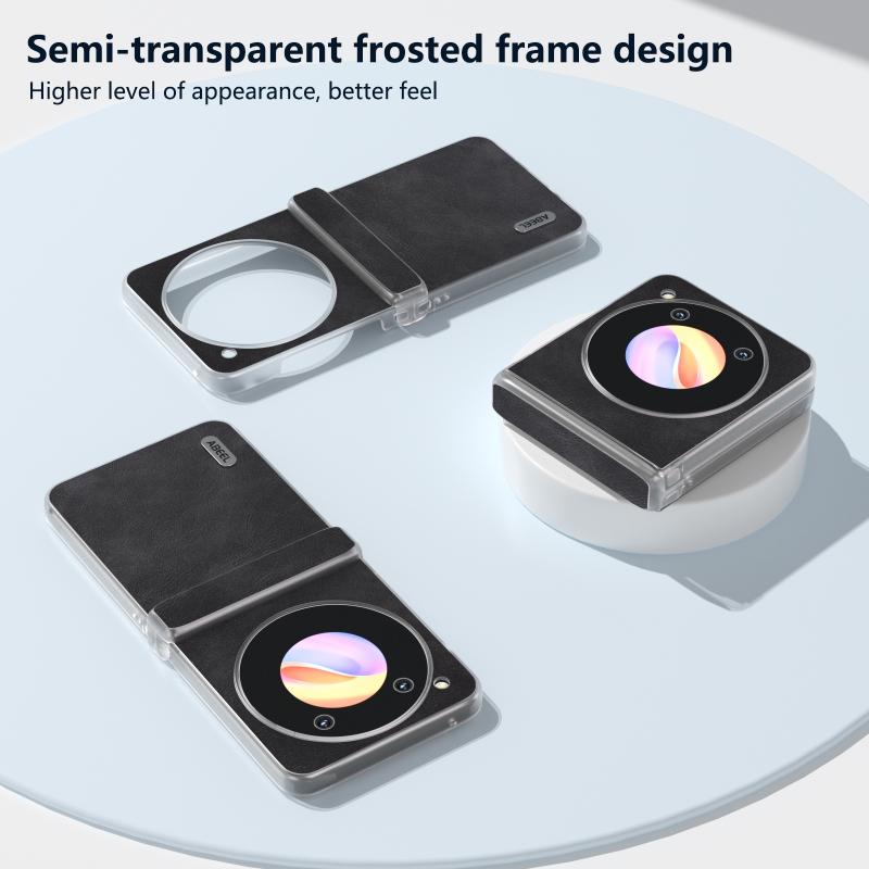 For ZTE nubia Flip ABEEL Three Parts Frosted Transparent Frame Hinge Calf Texture PU Phone Case(Black)