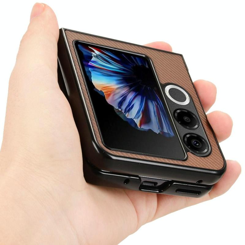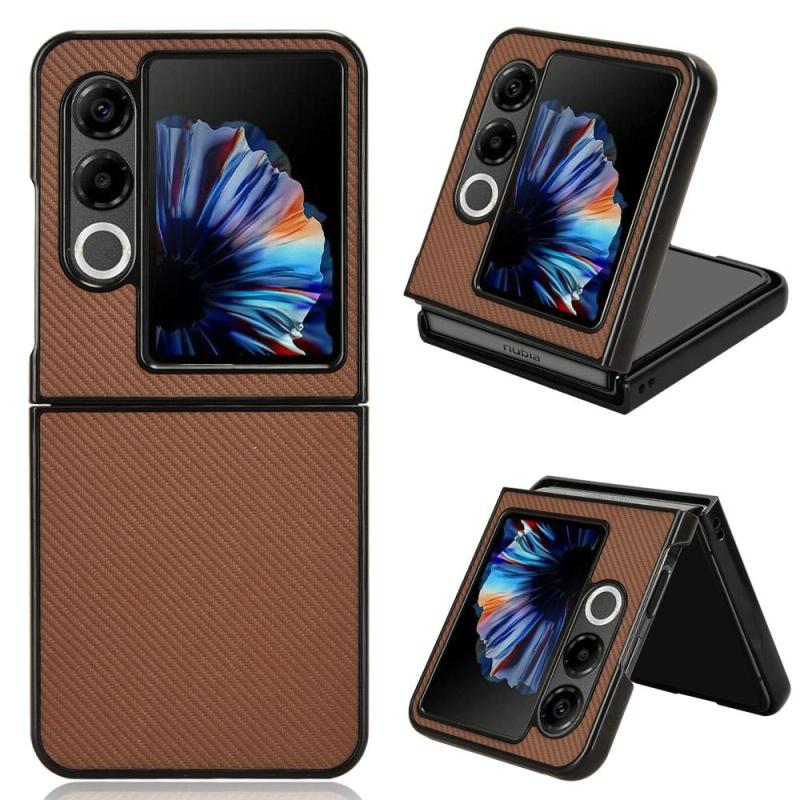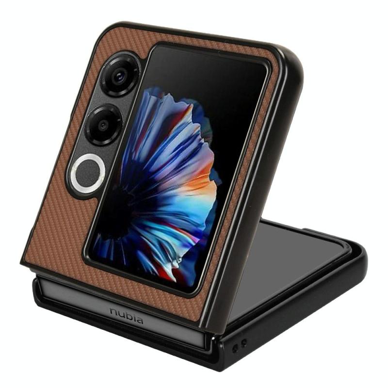 For ZTE nubia Flip2 Carbon Fiber Texture PU Leather PC Phone Case(Brown)
