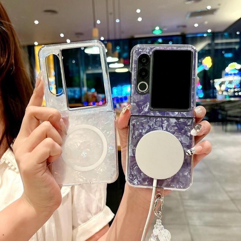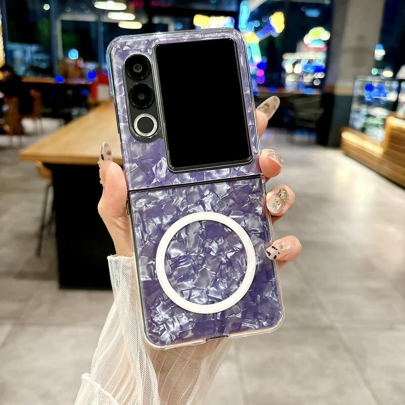 For ZTE nubia Flip2 Pearlescent Shell Texture MagSafe Phone Case(Purple)