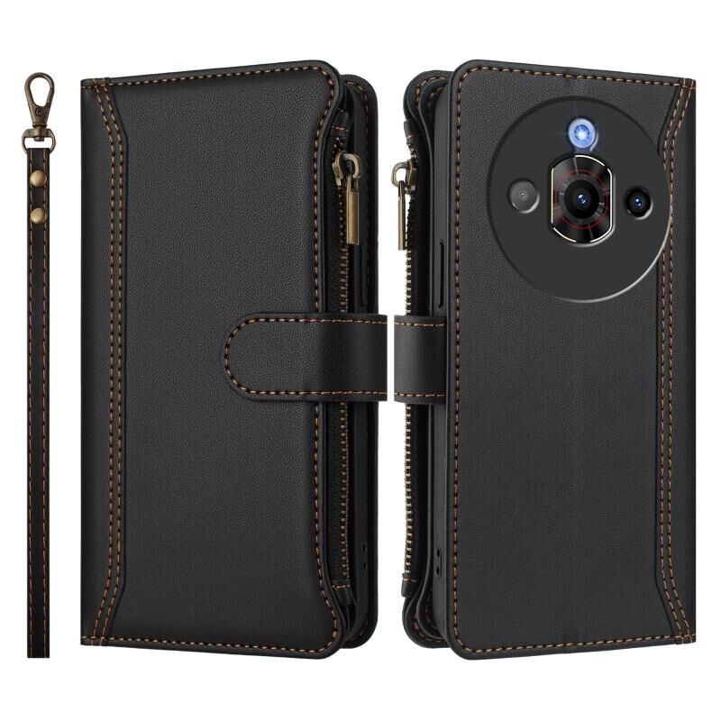 For ZTE Nubia Focus Pro 5G Magnetic Closure 9 Card Slots Zipper Leather Case with Hand Strap(Black)