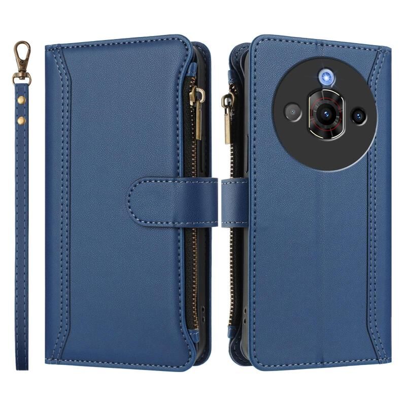 For ZTE Nubia Focus Pro 5G Magnetic Closure 9 Card Slots Zipper Leather Case with Hand Strap(Dark Blue)