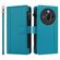 For ZTE Nubia Focus Pro 5G Magnetic Closure 9 Card Slots Zipper Leather Case with Hand Strap(Turquoise)