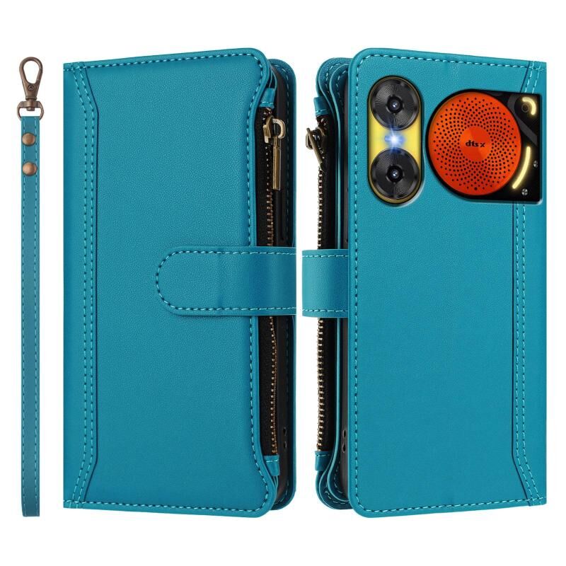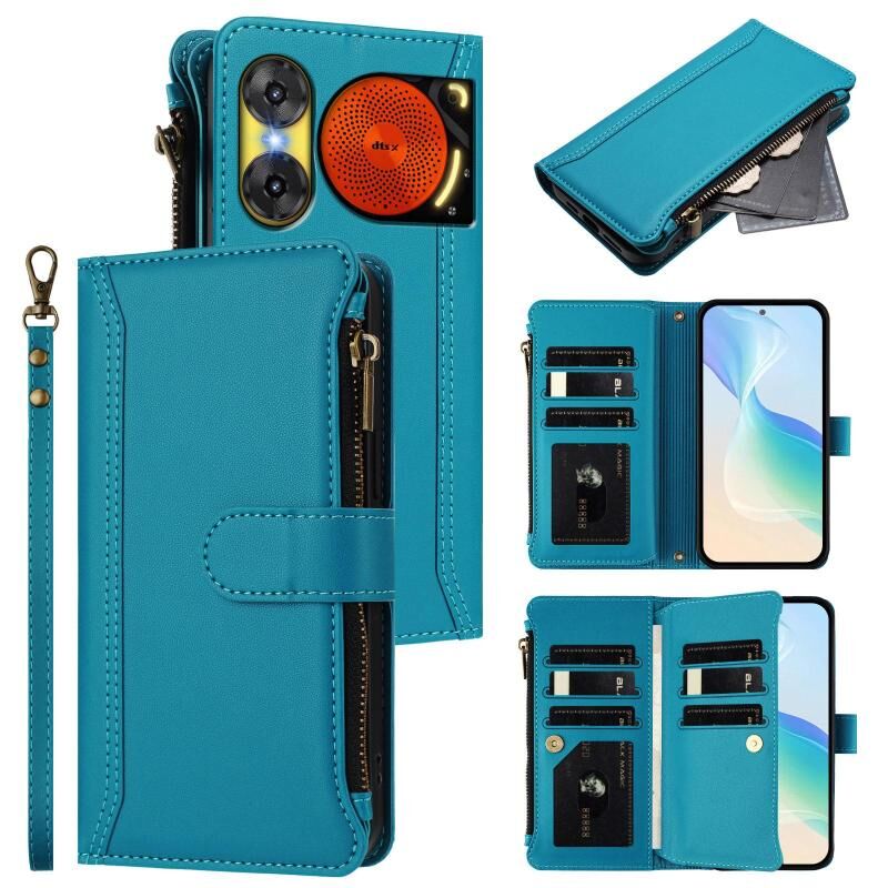 For ZTE Nubia Music 2 Magnetic Closure 9 Card Slots Zipper Leather Case with Hand Strap(Turquoise)