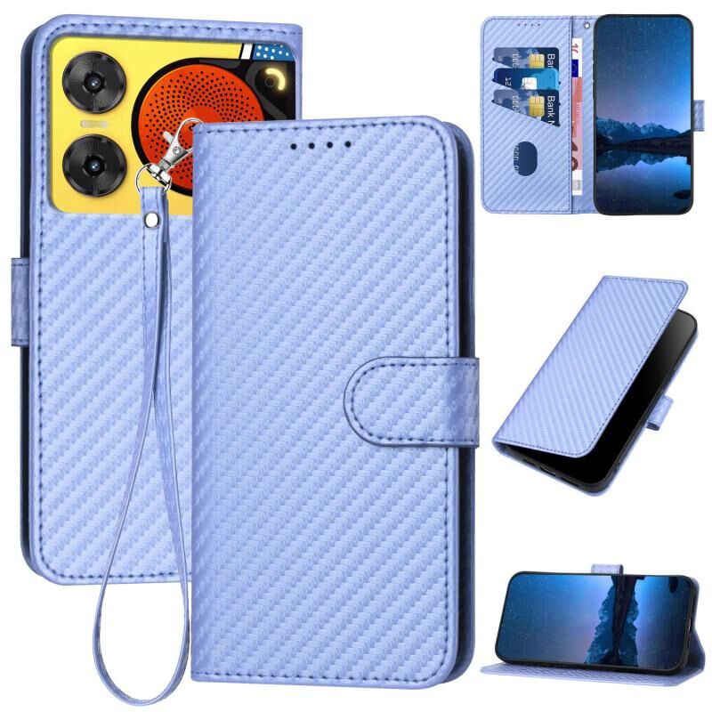 Θήκη τηλεφώνου από δέρμα με αγκράφα από ανθρακονήματα για ZTE nubia Music 2 YX0070 με κορδόνι (ανοιχτό μωβ)