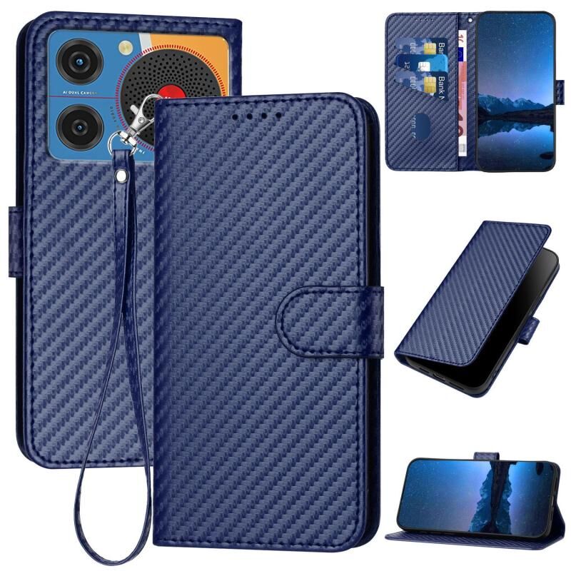 Θήκη τηλεφώνου για ZTE nubia Music YX0070 από δέρμα με αγκράφα από ανθρακονήματα και λουρί (Βασιλικό μπλε)