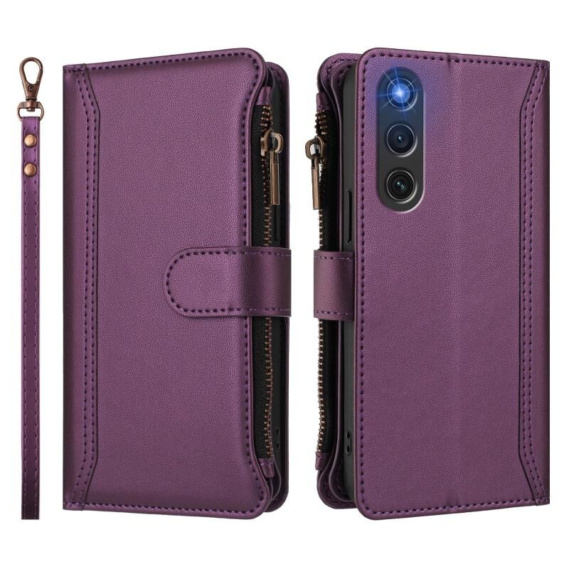 For ZTE Nubia Red Magic 10 Air Magnetic Closure 9 Card Slots Zipper Leather Case with Hand Strap(Purple)