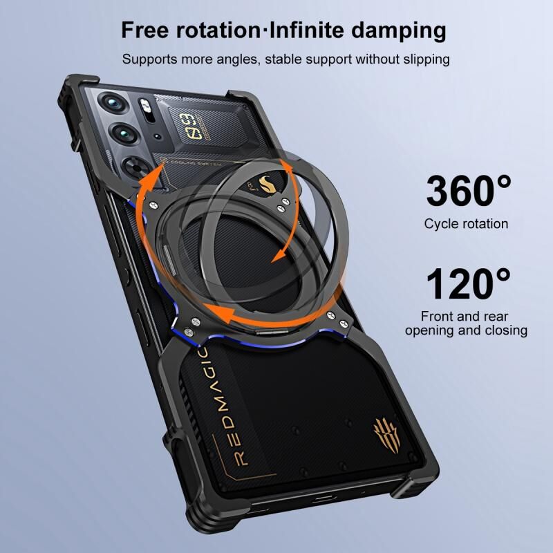 For ZTE nubia Red Magic 10 Air Mechanical Arm Borderless MagSafe Holder Metal Phone Case(Black Silver)