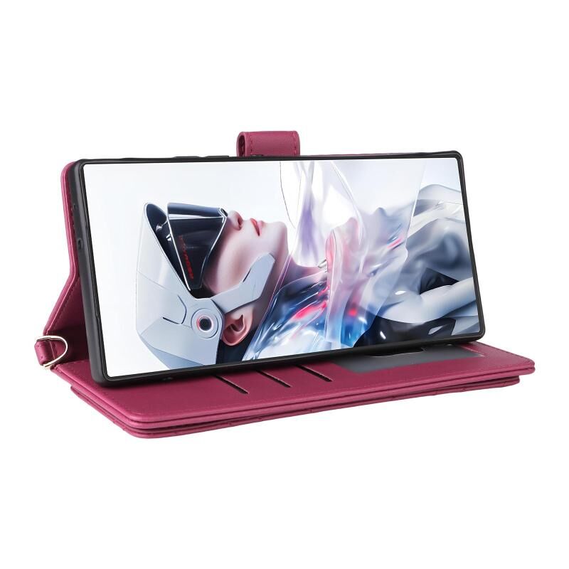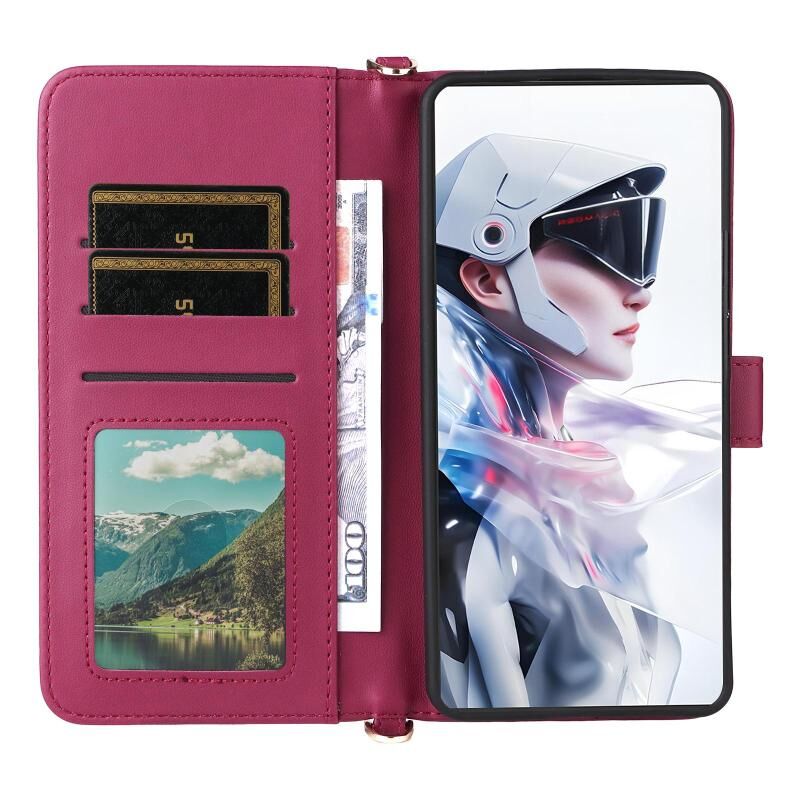 Θήκη τηλεφώνου από δέρμα για ZTE nubia Red Magic 10 Air, πολυλειτουργική με 6 υποδοχές καρτών και λουρί καρπού (Ροζ)