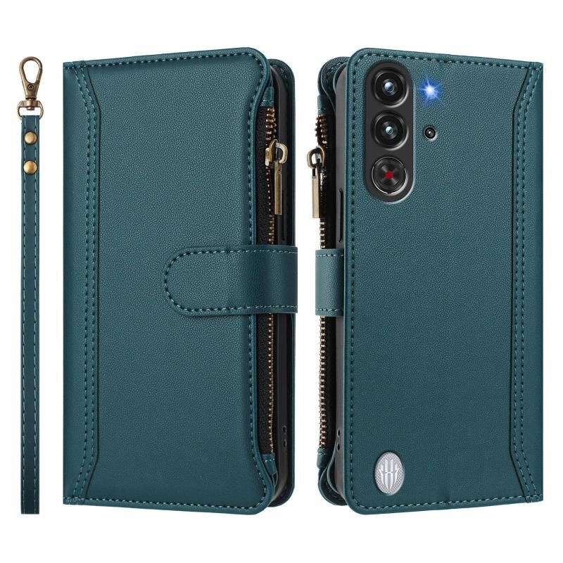 For ZTE Nubia Red Magic / 10 Pro / 10 Pro+ Magnetic Closure 9 Card Slots Zipper Leather Case with Hand Strap(Dark Green)
