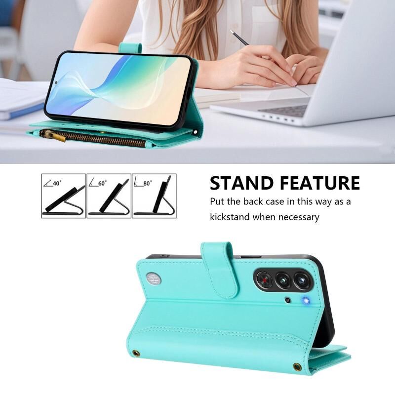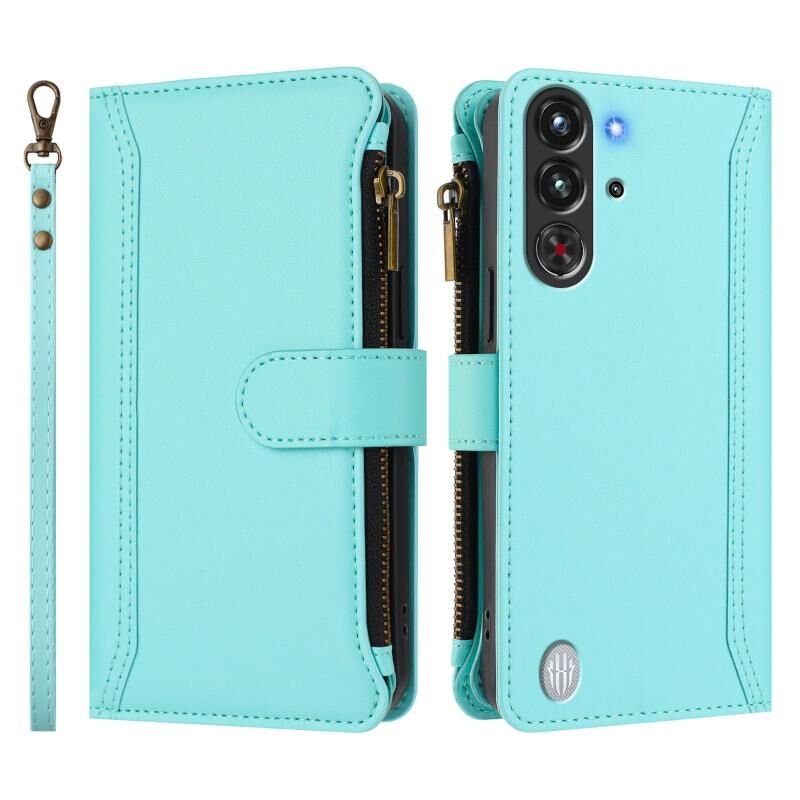 For ZTE Nubia Red Magic / 10 Pro / 10 Pro+ Magnetic Closure 9 Card Slots Zipper Leather Case with Hand Strap(Mint Green)