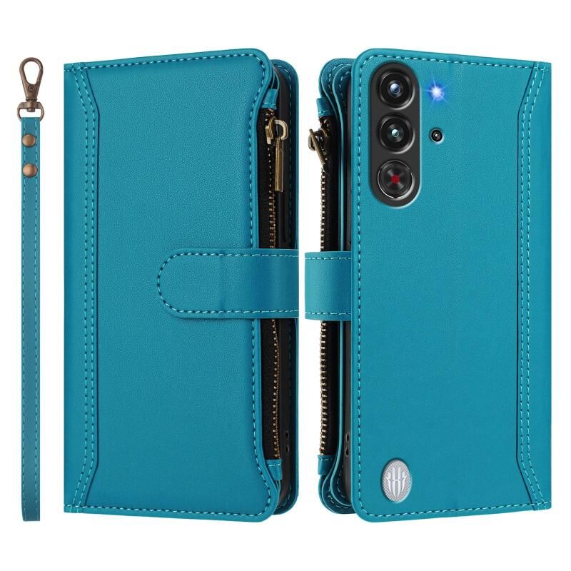 For ZTE Nubia Red Magic / 10 Pro / 10 Pro+ Magnetic Closure 9 Card Slots Zipper Leather Case with Hand Strap(Turquoise)