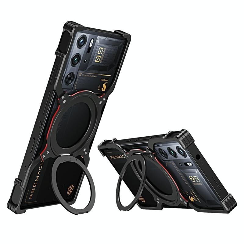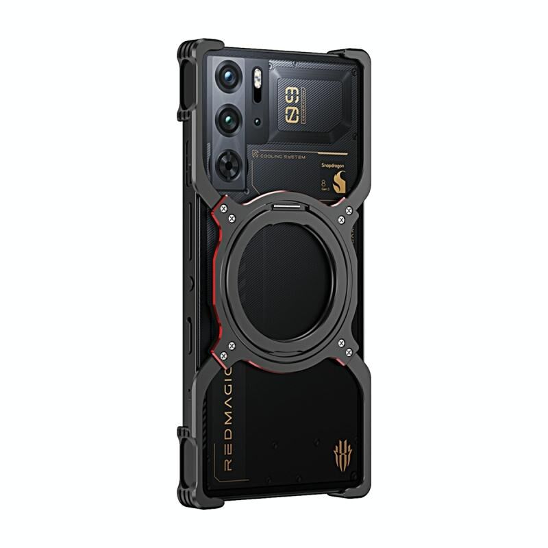 For ZTE nubia Red Magic 10 Pro / 10 Pro+ Mechanical Arm Borderless MagSafe Holder Metal Phone Case(Black Red)