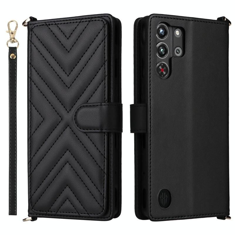 For ZTE nubia Red Magic 10 Pro / 10 Pro+ Multifunctional 6-Card Slots Leather Phone Case with Wrist Strap(Black)