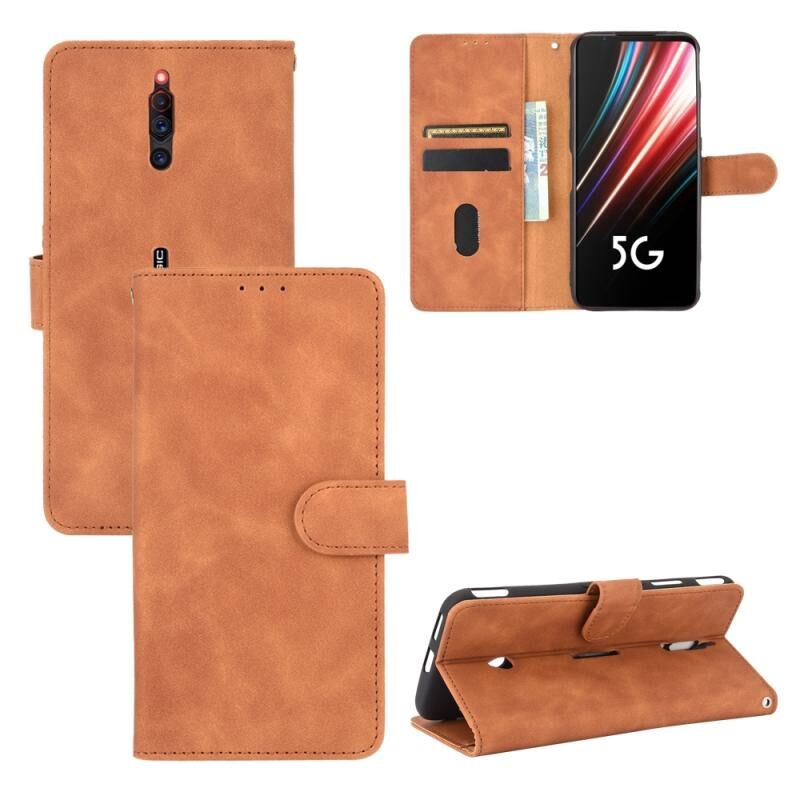 Για ZTE Nubia Red Magic 5G Solid Color Skin Feel Μαγνητική πόρπη οριζόντια Flip μοσχάρι υφή PU δέρμα υπόθεση με κάτοχο & υποδοχές καρτών & πορτοφόλι (καφέ)