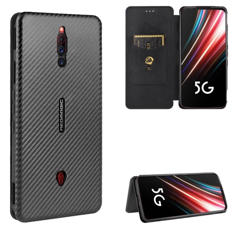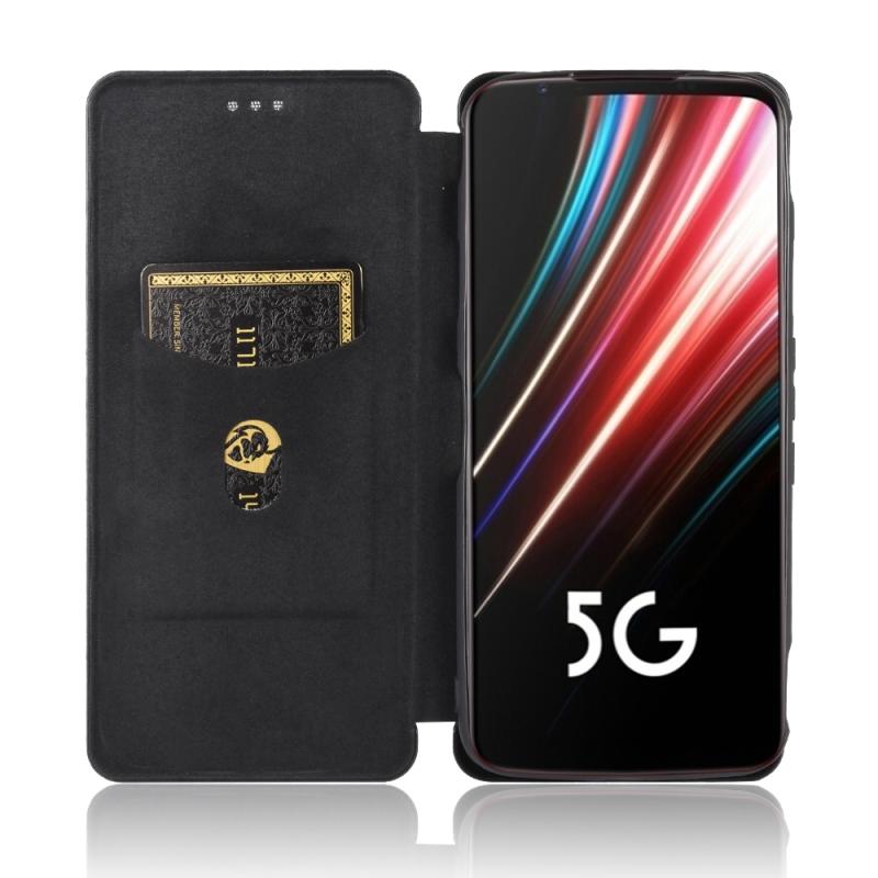 For ZTE nubia Red Magic 5S Carbon Fiber Texture Horizontal Flip TPU + PC + PU Leather Case with Card Slot(Black)