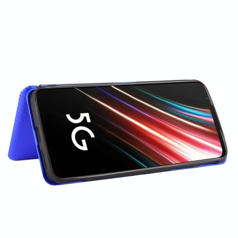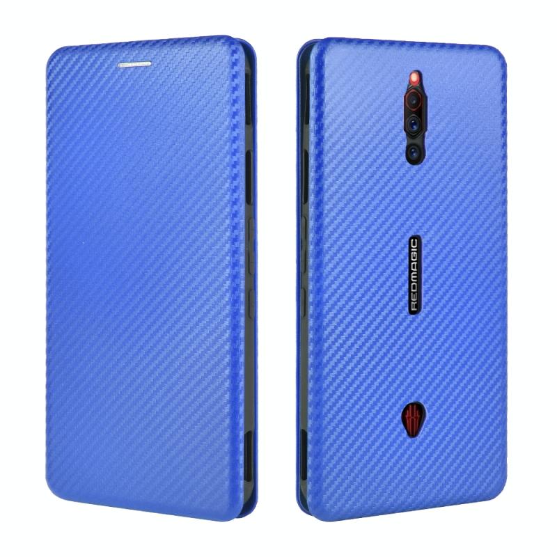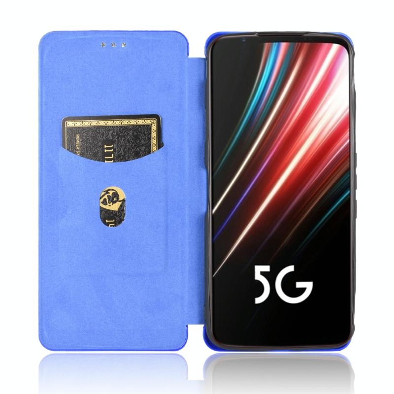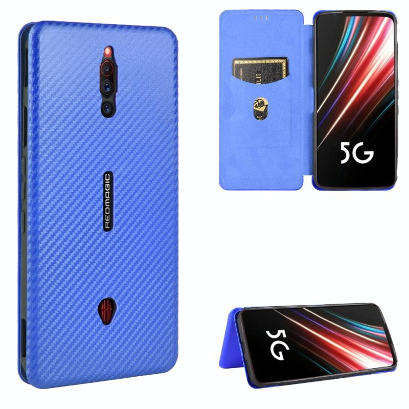 For ZTE nubia Red Magic 5S Carbon Fiber Texture Horizontal Flip TPU + PC + PU Leather Case with Card Slot(Blue)