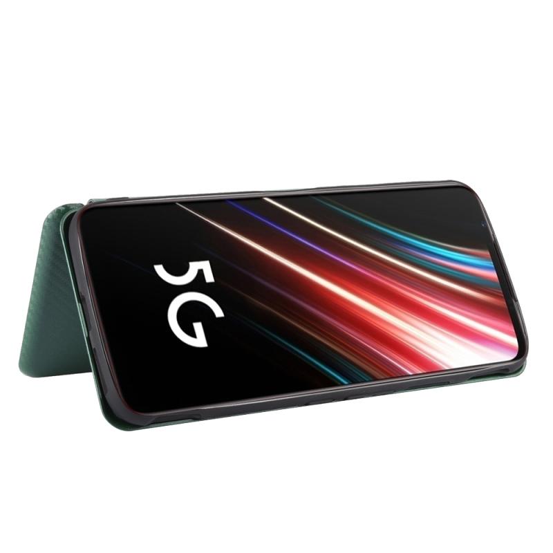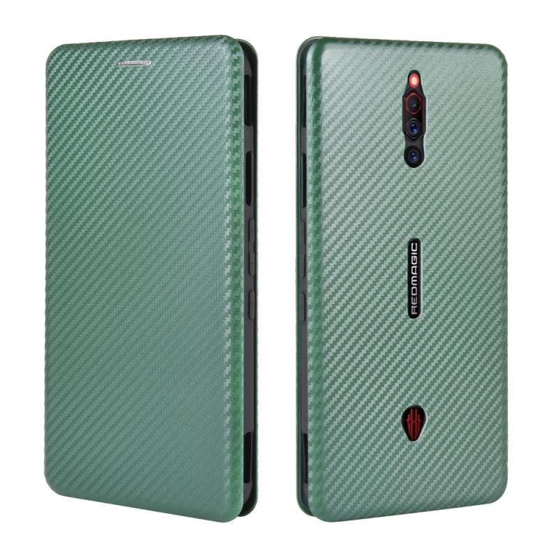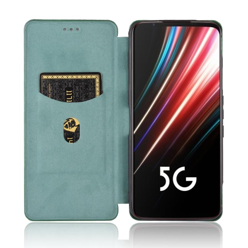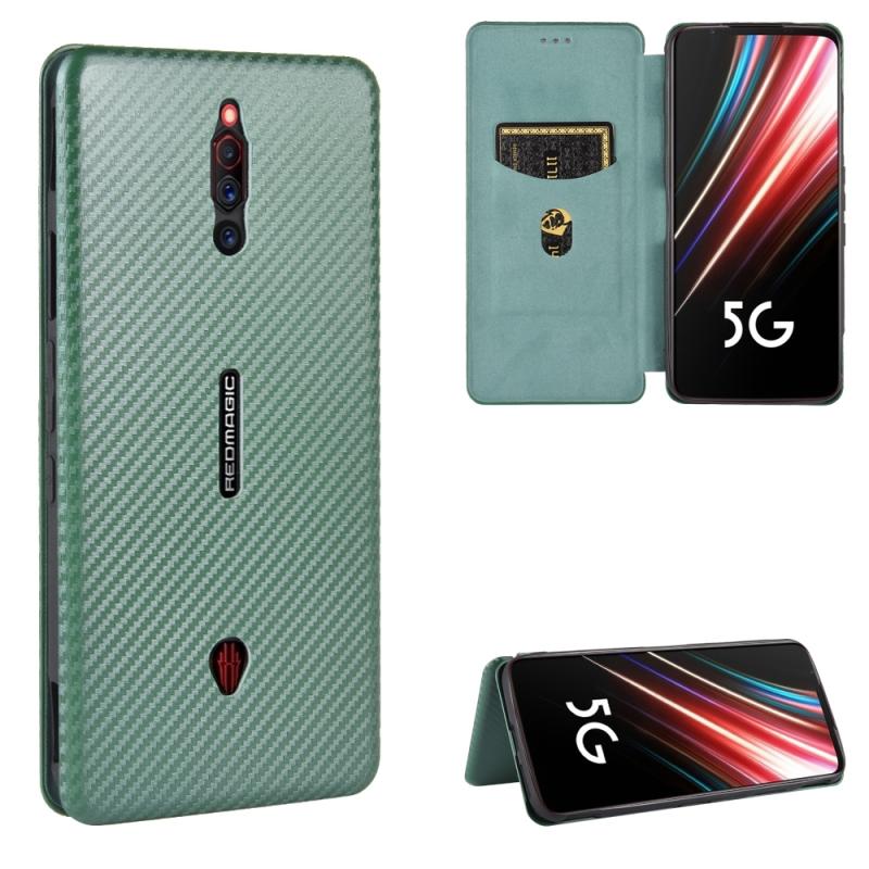 For ZTE nubia Red Magic 5S Carbon Fiber Texture Horizontal Flip TPU + PC + PU Leather Case with Card Slot(Green)