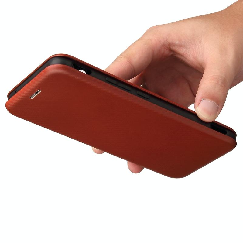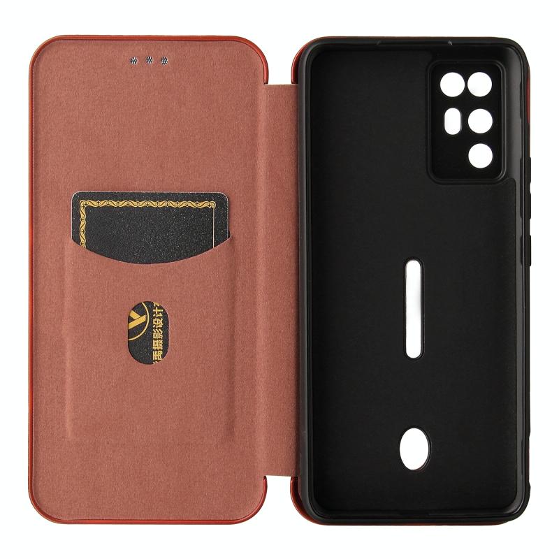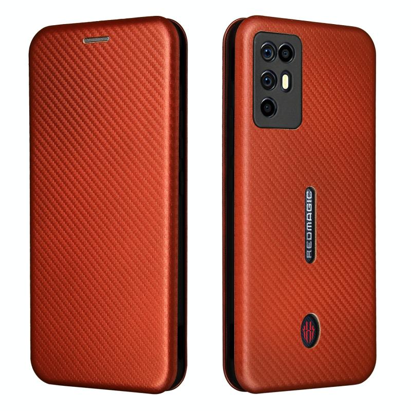 For ZTE Nubia Red Magic 6R Carbon Fiber Texture Horizontal Flip TPU + PC + PU Leather Case with Card Slot(Brown)