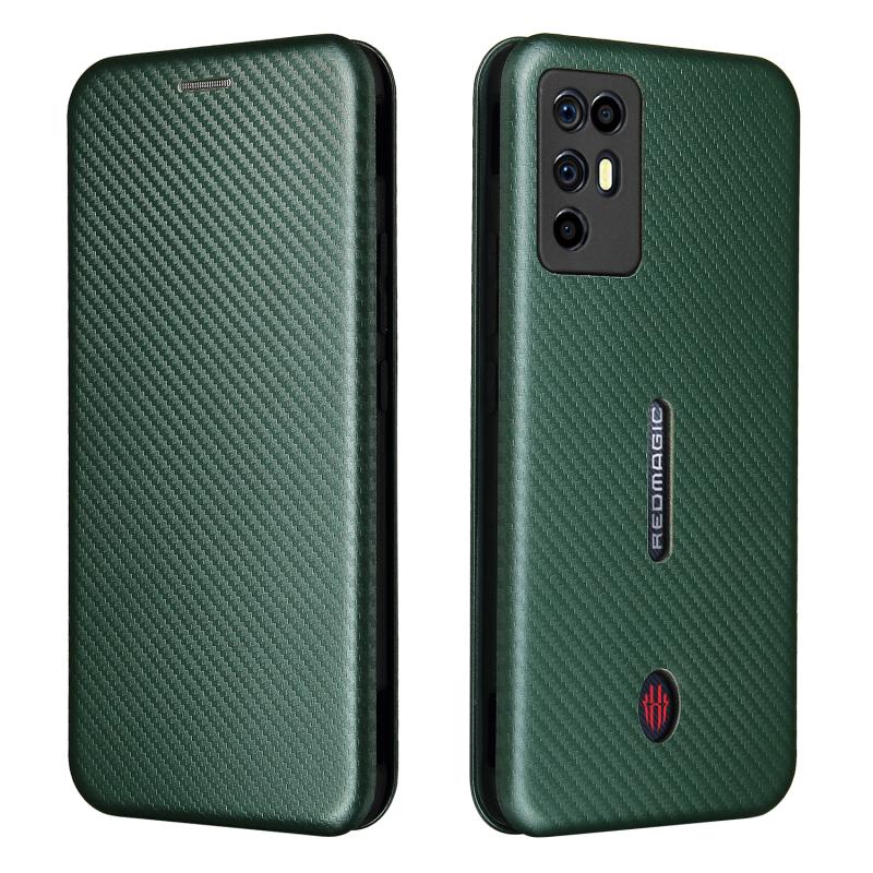 For ZTE Nubia Red Magic 6R Carbon Fiber Texture Horizontal Flip TPU + PC + PU Leather Case with Card Slot(Green)