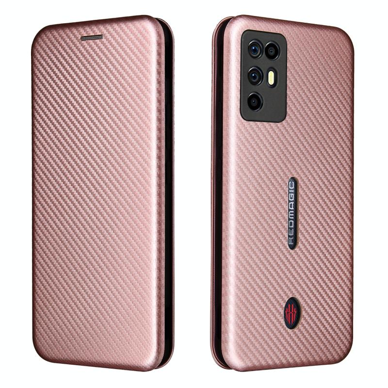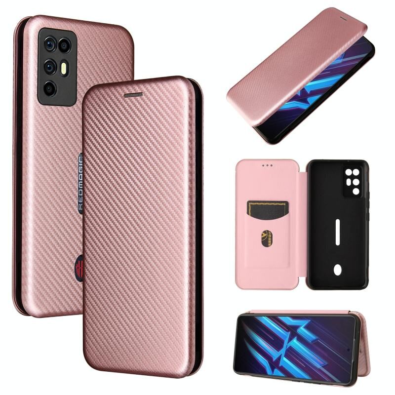 For ZTE Nubia Red Magic 6R Carbon Fiber Texture Horizontal Flip TPU + PC + PU Leather Case with Card Slot(Pink)