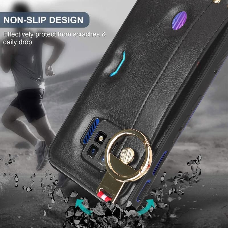 Για ZTE nubia Red Magic 7 Pro Wristband δέρμα πίσω τηλέφωνο υπόθεση (μαύρο)