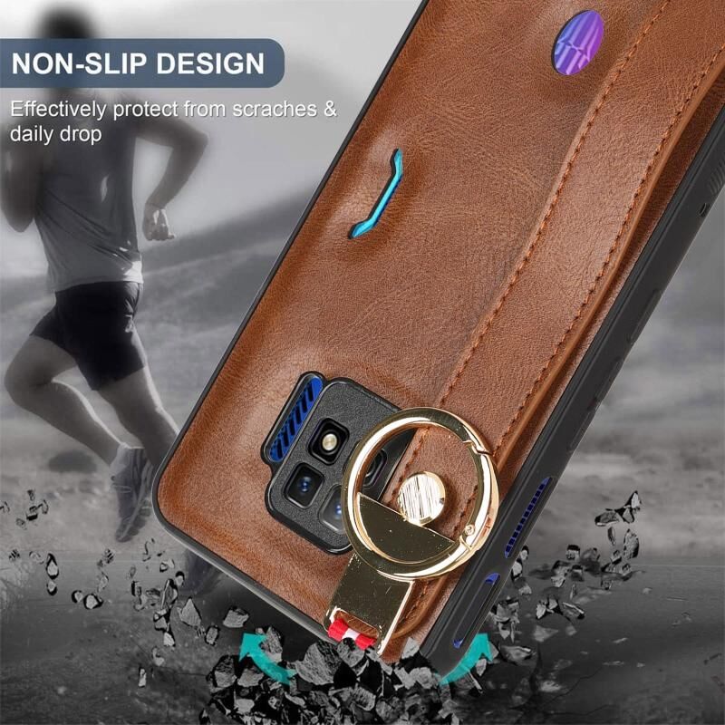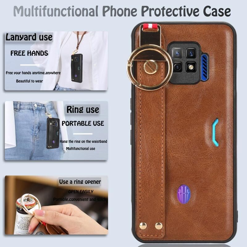 Για ZTE nubia Red Magic 7 Pro Wristband δέρμα πίσω τηλέφωνο υπόθεση (καφέ)