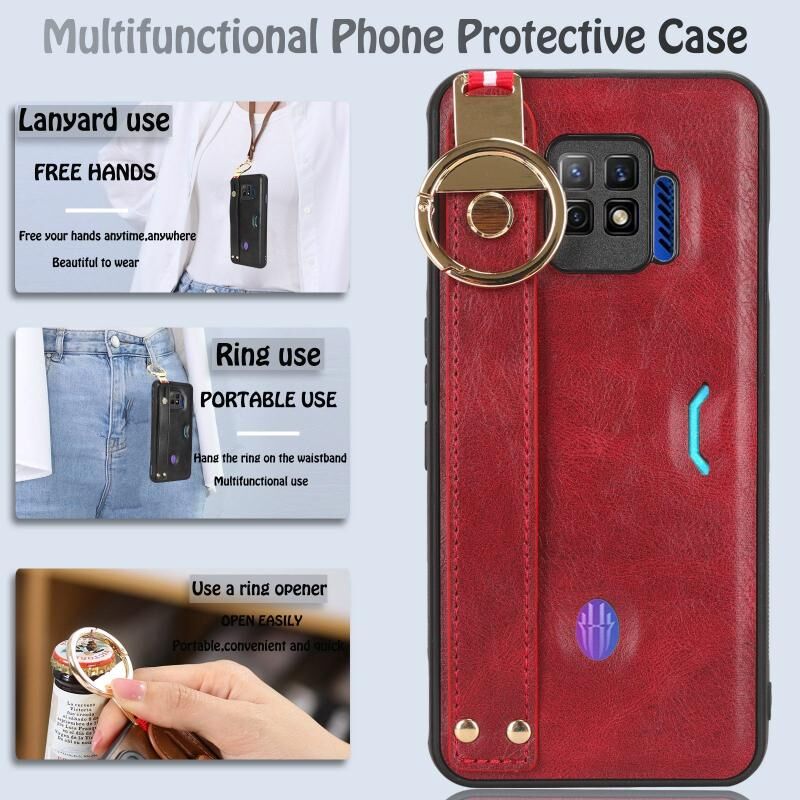 For ZTE nubia Red Magic 7 Pro Wristband Leather Back Phone Case(Red)