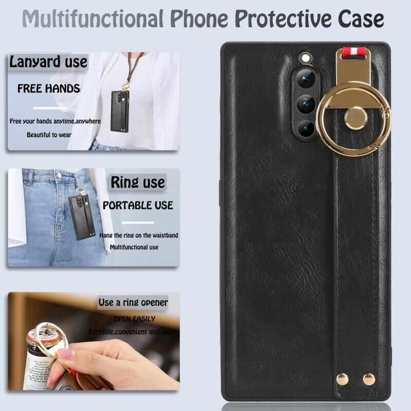 Για ZTE nubia Red Magic 8 Pro+ Wristband δέρμα πίσω υπόθεση τηλεφώνου (μαύρο)