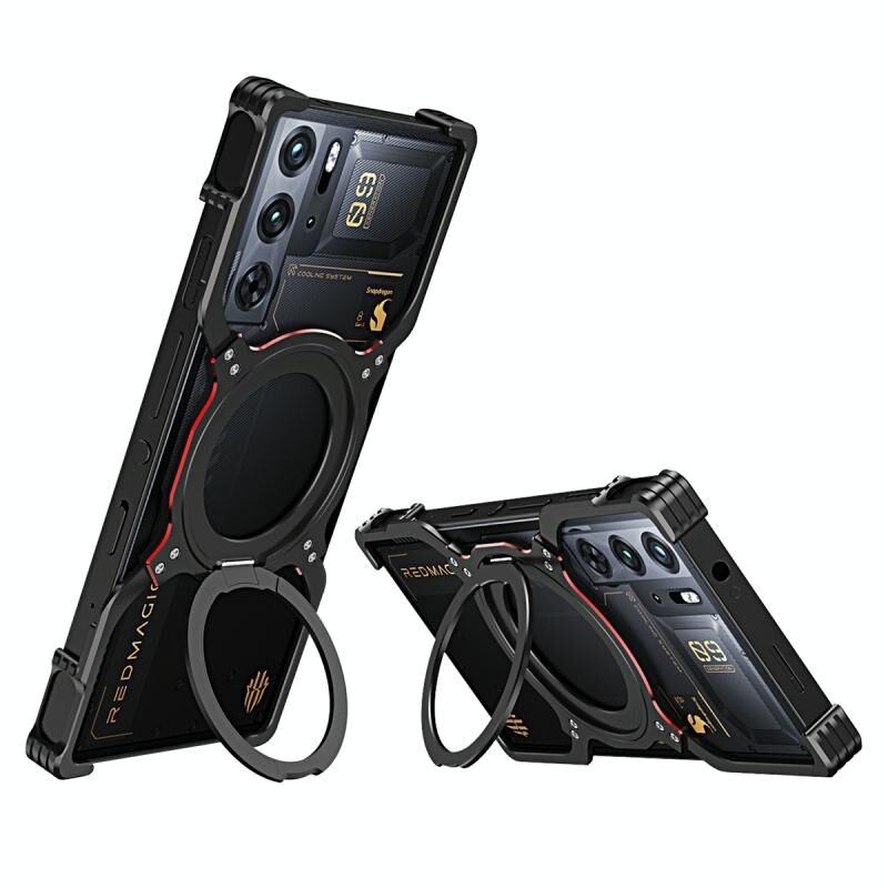 For ZTE nubia Red Magic 9 Pro / 9 Pro+ Mechanical Arm Borderless MagSafe Holder Metal Phone Case(Black Red)