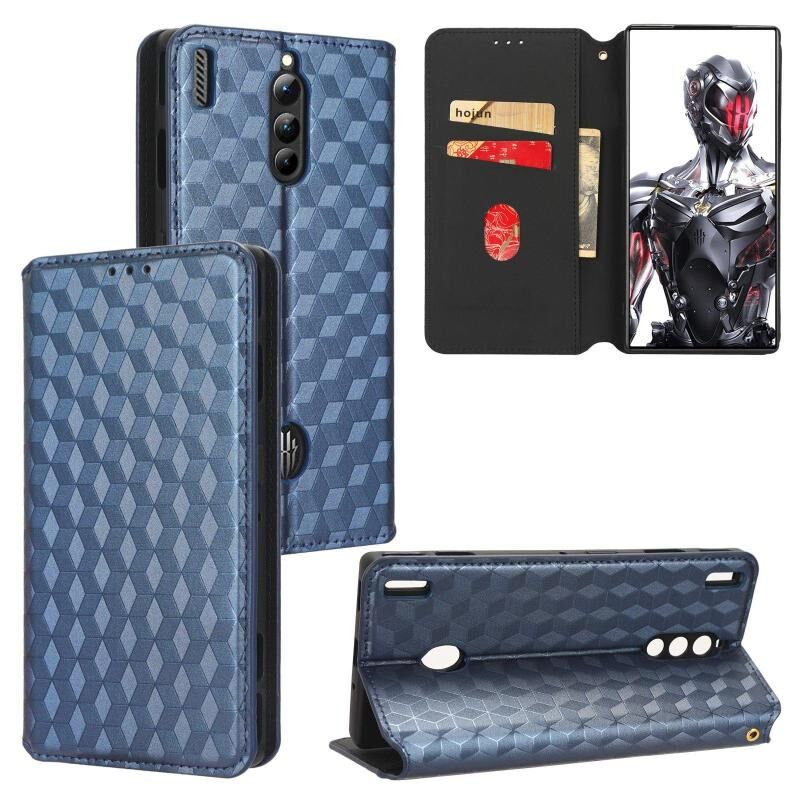 For ZTE nubia RedMagic 8 Pro 5G / 8 Pro+ Cubic Grid Texture Flip Leather Phone Case(Blue)