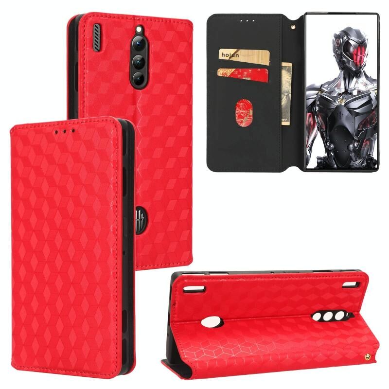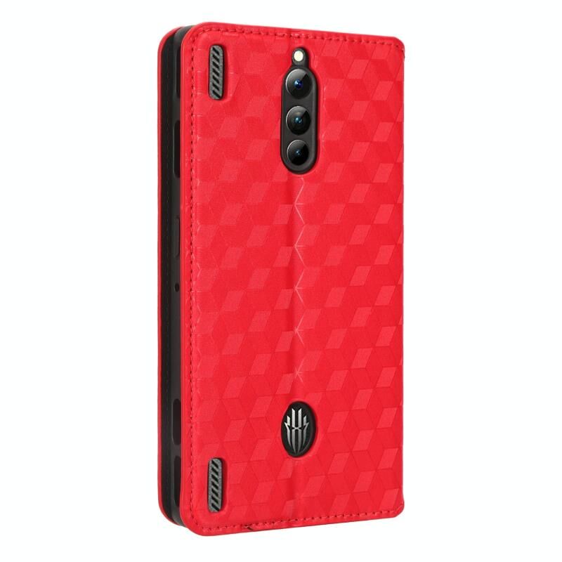 For ZTE nubia RedMagic 8 Pro 5G / 8 Pro+ Cubic Grid Texture Flip Leather Phone Case(Red)