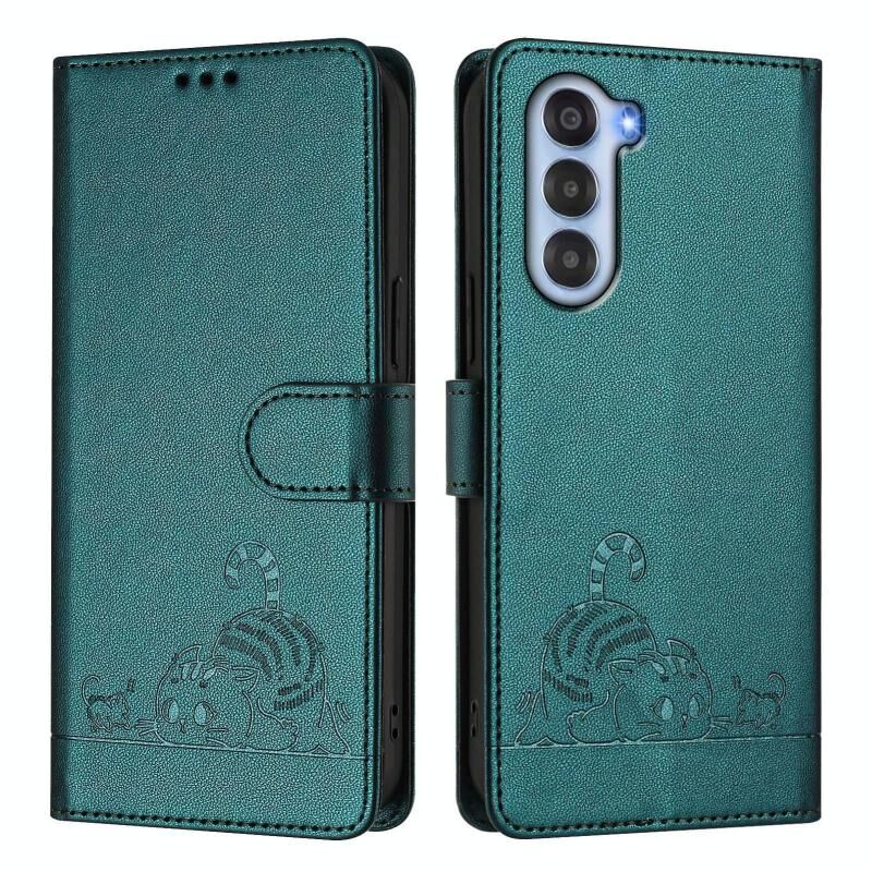 For ZTE nubia S 5G A403ZT Cat Rat Embossed Pattern RFID Leather Phone Case with Lanyard(Peacock Green)