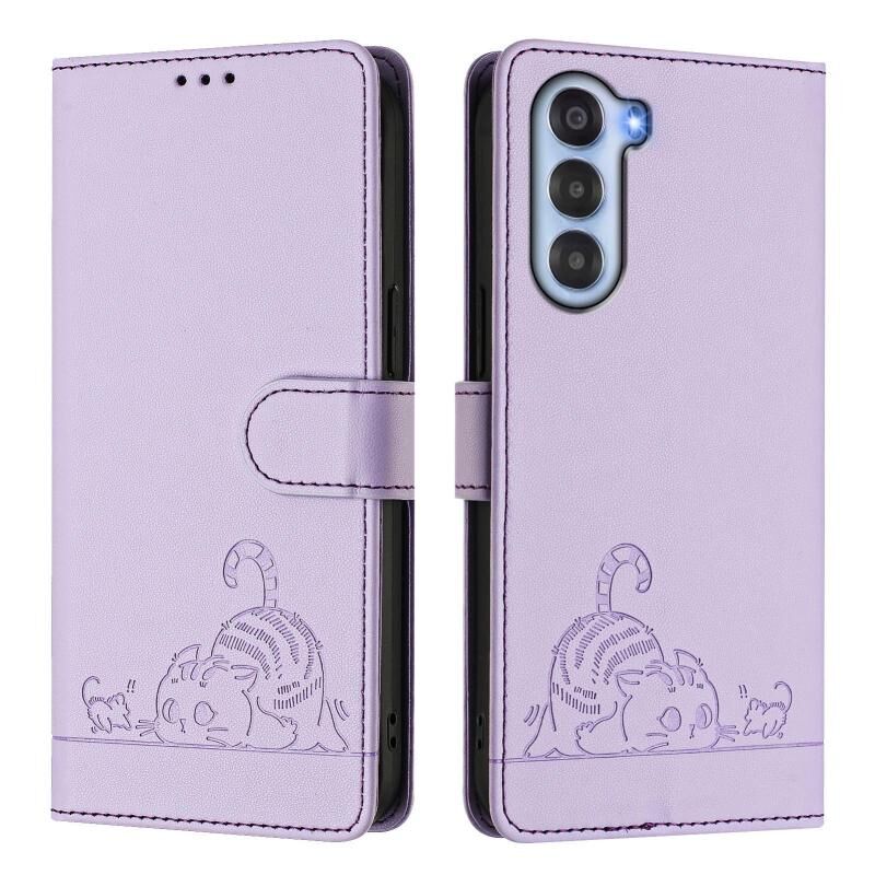 For ZTE nubia S 5G A403ZT Cat Rat Embossed Pattern RFID Leather Phone Case with Lanyard(Purple)