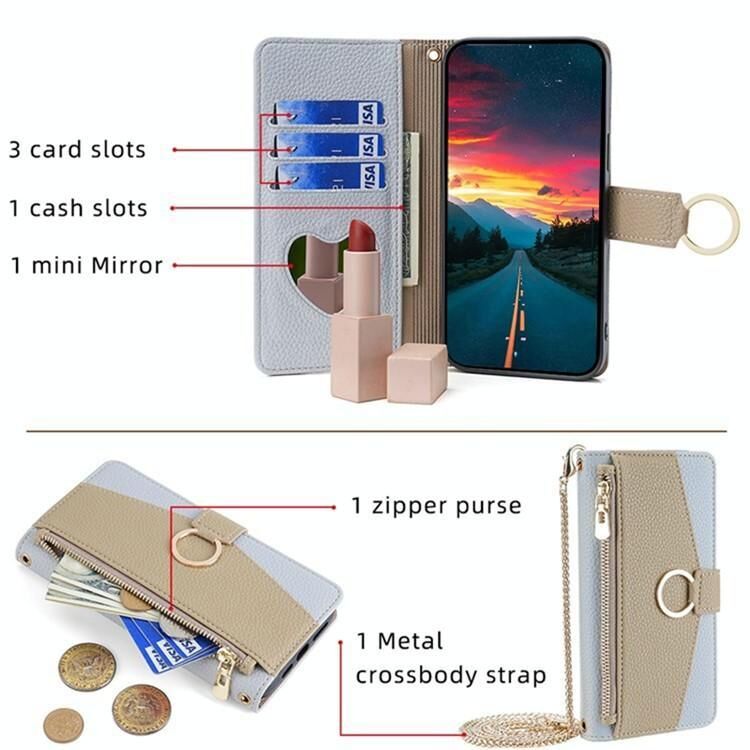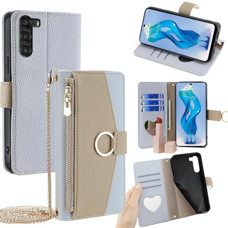 Θήκη τηλεφώνου ZTE nubia S 5G A403ZT σε στυλ crossbody από δέρμα με υφή λύτσι (Μπλε)