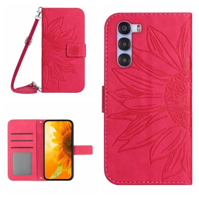 Για ZTE nubia S 5G A403ZT δέρμα αίσθηση Sun Flower μοτίβο δερμάτινη θήκη τηλεφώνου με κορδόνι (Rose Red)