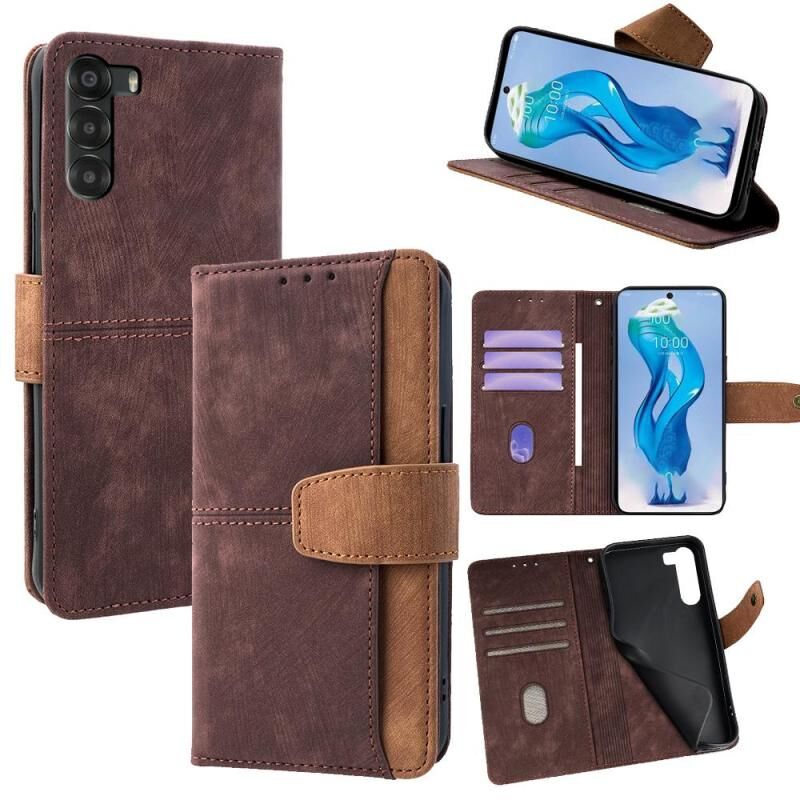 For ZTE Nubia S 5G Color Stitching Skin Feel Leather RFID Blocking Phone Case(Brown)