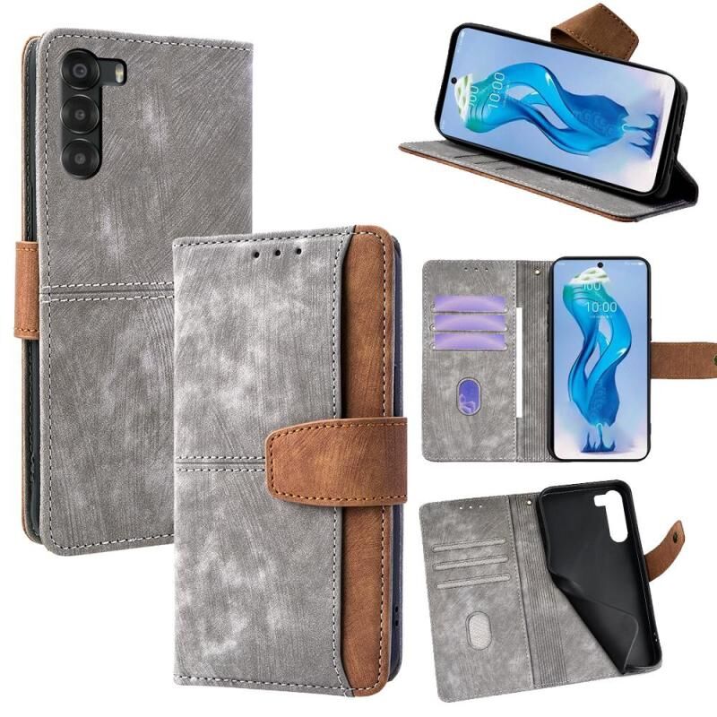 For ZTE Nubia S 5G Color Stitching Skin Feel Leather RFID Blocking Phone Case(Grey)