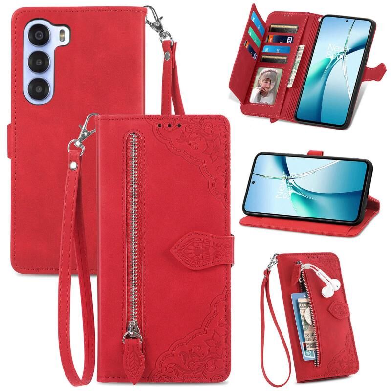 For ZTE Nubia S 5G Embossed Flower Zipper Leather Phone Case(Red)