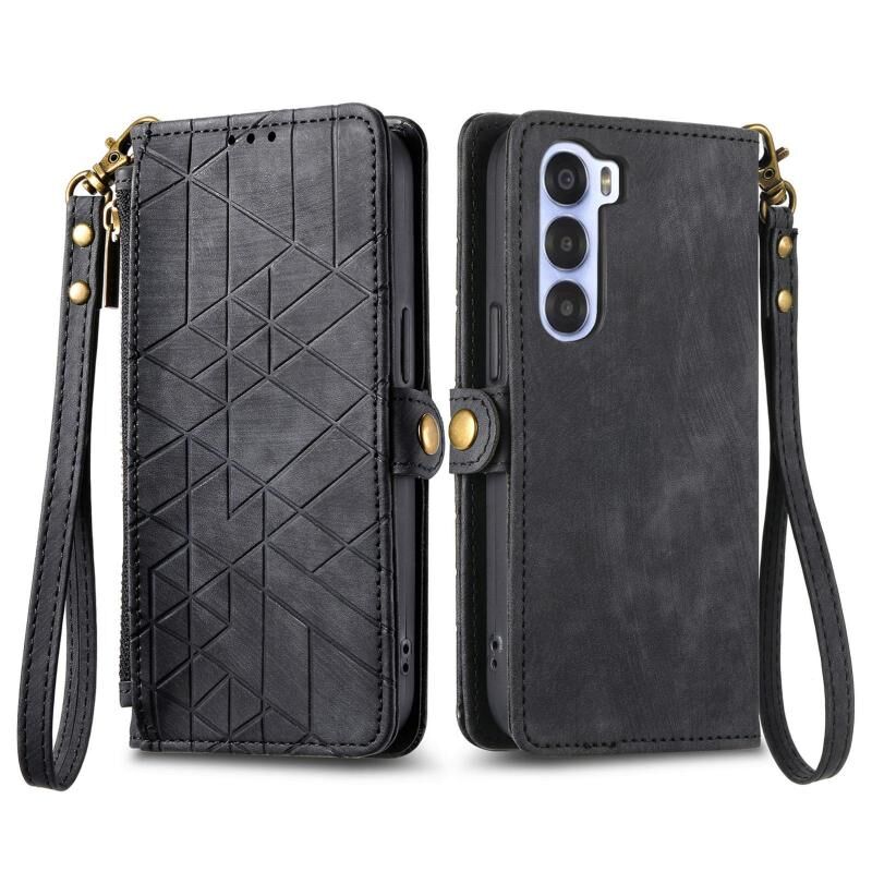 For ZTE Nubia S 5G Geometric Zipper Wallet Side Buckle Leather Phone Case(Black)
