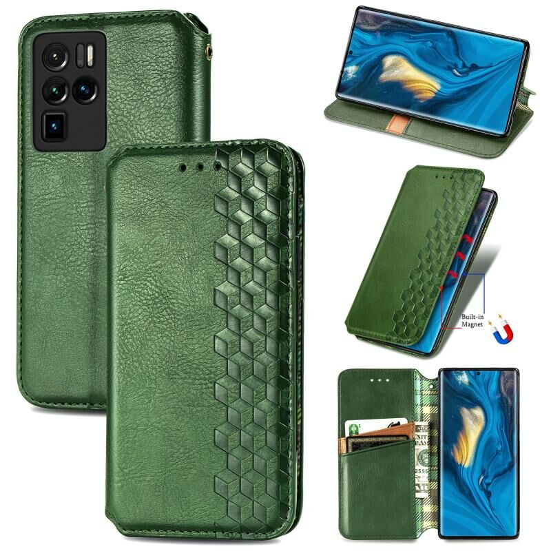 For ZTE nubia Z30 Pro Cubic Grid Pressed Horizontal Flip Magnetic PU Leather Case with Holder & Card Slots & Wallet(Green)